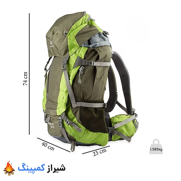 این کوله با وزن 1500 گرم و ابعاد 23×35×74 سانتیمتر، تعادل مناسبی بین سبکی و ظرفیت بالا ایجاد کرده است.